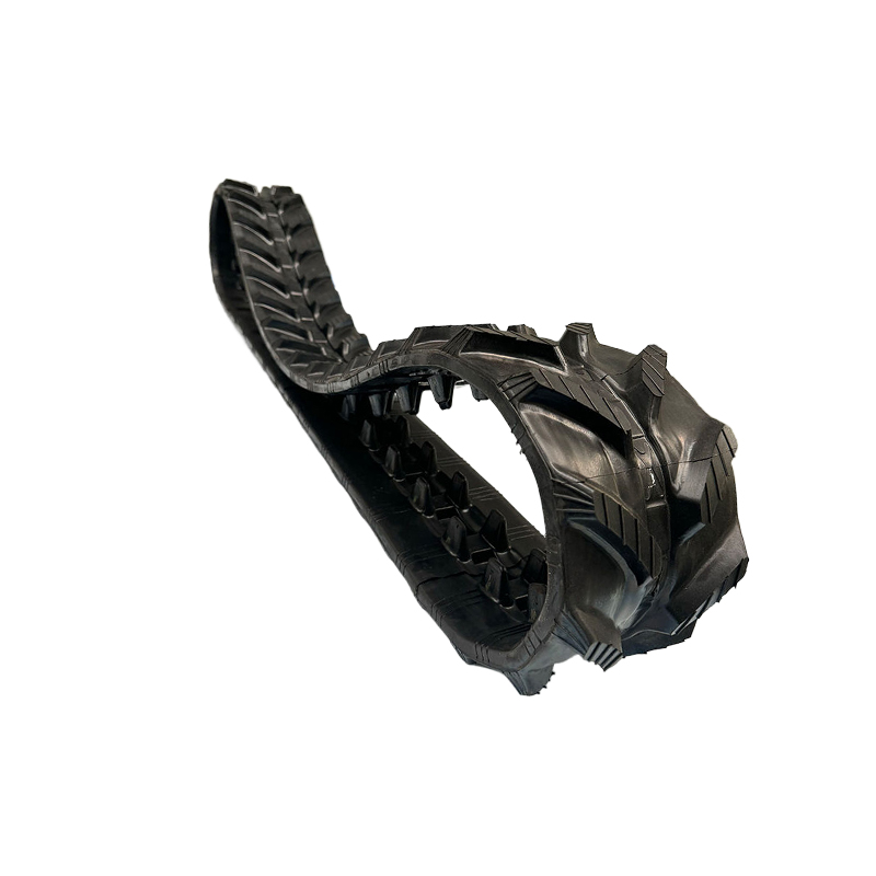 橡胶轨道由金属变速箱轴承部分,强层牵引部件和弹性橡胶部分组成。从外部到内部,它通常包括橡胶机身,图案层,缓冲层,强层和核心金和其他部分。其中,橡胶体提供了轨道的弹性和灵活性。图案层增加了与地面的摩擦和粘附,并改善了防滑性能。缓冲层可以在驾驶过程中吸收振动和冲击。坚固的层通常由高强度纤维或钢丝组成,其主要具有牵引力和负载的力。核心金是轨道的骨骼,通常是金属材料,用于连接和修复各个部分,从而增强了轨道的整体强度。